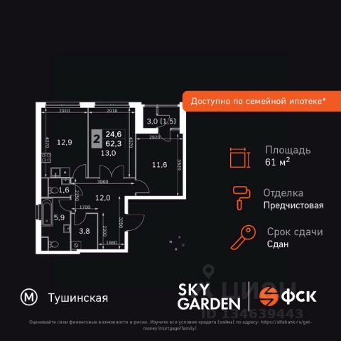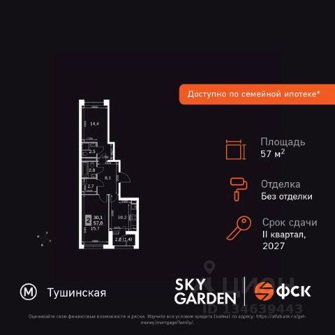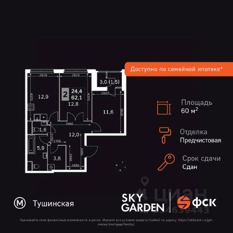 Прямая продажа от застройщика! Жилой Комплекс бизнес-класса. Продаётся 2-к квартира номер 995 общей площадью 61.1 кв.м. на 43-м этаже 43 этажного здания. Предчистовая отделка. Цена с учётом скидки. Особенности квартиры: - Организуем показ в удобное для вас время! - Просторная спальня, в которой можно разместить большую кровать. - Угловая планировка - больше пространства для ваших идей. - Окно в ванной - натуральное освещение для уюта и комфорта. - Увеличенная ширина окна/окон - больше света и визуального простора. - Панорамное окно (1 и более) - раскрывает просторы вашего дома. - Увеличенная высота окна - больше воздуха и света. - Гостевой санузел - комфорт и удобство для ваших гостей. - Постирочная - организуйте пространство для стирки и сушки вещей. - Гибкая планировка - создайте пространство по своему вкусу. - Увеличенная высота потолков - ощущение простора и легкости. - Можно оборудовать 2 или более рабочих места - пространство для нескольких человек. - Можно оборудовать рабочее место - комфорт для работы и учёбы. - Можно сделать распашные двери - удобный доступ и стильный акцент. - Просторная кухня - место для семейных ужинов и кулинарных экспериментов. - Ниша под шкаф - компактное и удобное место для вещей. - Лоджия - уютное место для отдыха и тишины. Квартира с предчистовой отделкой. Вам не придется заниматься черновыми и трудоёмкими работы, а чистовую отделку и дизайн - сделайте на свой вкус. Информация о комплексе: ЖК "Скай Гарден" в Покровском-Стрешнево: гармония природы и мегаполиса. Живите среди зелени одноимённого парка, рек и каналов с чистым воздухом, сохраняя все преимущества городской инфраструктуры. Идеальный баланс для тех, кто ценит природу без компромиссов в комфорте. Транспортная доступность: Всего в 12 минутах пешком до м. Тушинская и 15 минутах до станции Тушинская МЦД. На автомобиле: 2 км до Волоколамского шоссе, 2,5 км до МКАД и 15 км до Садового кольца Внутренняя инфраструктура: К вашим услугам игровые площадки для детей с горками и фонтанами. Йога на газоне, воркаут, велопарковки. На территории: поликлиника, аптека, супермаркет, зоны отдыха. Игровая комната в лобби, хранилище для велосипедов в подъездах. Рядом: кафе, пекарня, мастерские, секции. Парк 3,5 га с набережной для прогулок. Всё для жизни и спорта в шаговой доступности. Квартира с предчистовой отделкой - ваш дизайн без черновых работ