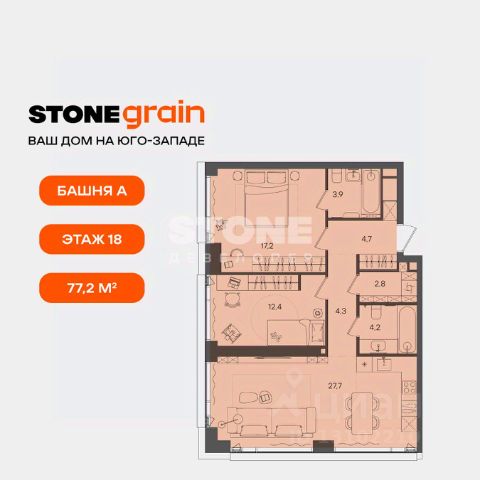 В продаже 2-спальная квартира с мастер-спальней, просторной кухней-столовой, гардеробной и гостевым санузлом. Дополнительные преимущества - панорамное остекление и вид на закрытый благоустроенный двор жилого комплекса. Квартира с 2 спальнями - прекрасный выбор для семей с 1-2 детьми, а также отличное инвестиционное решение для тех, кто планирует сдавать жилье в аренду. Жилой комплекс бизнес+ класса СТОУН Грэйн находится на Юго-Западе Москвы в Обручевском районе. Расположение вблизи двух станций метро и ключевых транспортных магистралей обеспечивает быстрый доступ к центру столицы и соседним районам: - 2 мин. до м. "Калужская" и "Воронцовская" - Удобный выезд на ул. Обручева и ул. Профсоюзную - 2,5 км до Ленинского проспекта - 6 км до ТТК и МКАД - 10 км до Садового кольца и Рублёвского шоссе - 30 мин. на автомобиле до "Москва-Сити", Лужников и МГУ Проект расположен в районе с развитой образовательной и социальной базой. Рядом с жилым комплексом находятся ведущие вузы Москвы, лучшие детские сады и школы. Среди других особенностей - зеленое окружение, близость к Воронцовскому парку. Проект отличает выверенная архитектура от Kleinewelt Architekten. Башня А высотой в 45 этажей станет архитектурной доминантой с выразительными поясами балконов галерейного типа и эксклюзивными лотами со вторым светом. Камерная 20-этажная башня Б со скатной крышей будет включать двухуровневые квартиры с террасами. На закрытой благоустроенной территории разместятся игровые площадки для детей разных возрастов, workout-зона, павильоны для работы на открытом воздухе. Жители также смогут воспользоваться дополнительными зонами отдыха и инфраструктурой на территории, прилегающей к офисному кварталу класса А STONE Калужская. Комфортный микроклимат в квартирах обеспечивают современные инженерные решения. Для удобства жителей предусмотрен двухуровневый подземный паркинг на 270 машиномест. STONE - девелопер коммерческой и жилой недвижимости классов бизнес и премиум в Москве с 19-летним опытом. Сегодня занимает лидирующую позицию на офисном рынке (рейтинг РБК). В портфеле девелопера представлено 3 млн кв. м построенных, строящихся и проектируемых объектов, из которых более 1 млн кв. м находятся в стадии строительства. Компания имеет самый масштабный проектный портфель офисной недвижимости класса А на московском рынке (данные NF Group) и возглавляет топ устойчивых девелоперов, согласно исследованию FResearch - Forbes. В настоящий момент девелопером представлено 16 бизнес-центров класса А, а также 3 жилых комплекса бизнес+ класса. ID.31007