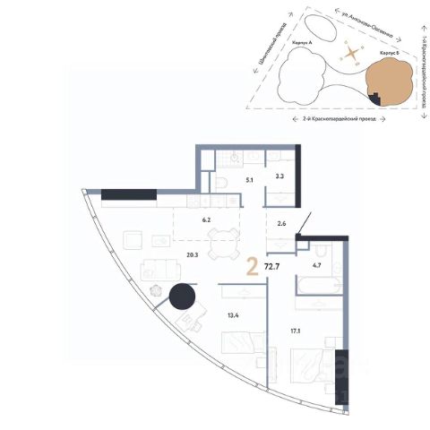 • ✓ Минимальная площадь: 72,6 м²
