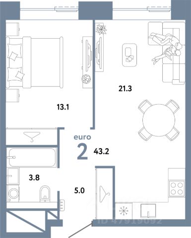 Продаётся 2-комнатная квартира в строящемся доме (Дом 1 (участок 3/4а)), срок сдачи: I-кв. 2028, общей площадью 43.2 кв.м., на 17 этаже. Новый жилой дом от застройщика "Страна Девелопмент" расположен по адресу Россия, Москва, Иловайская улица