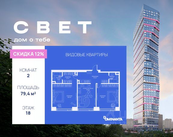 Продаётся 2-к квартира 57 кв.м. на 14-м этаже 51 этажного дома. Без отделки. Срок сдачи: 1 кв. 2028 г. Жилой комплекс "СВЕТ" — воплощение современного комфорта и архитектурного изящества, созданное девелопером Dominanta в сотрудничестве с известным бюро СПИЧ. Комплекс представляет собой элегантное 52-этажное здание, расположенное в Западном Дегунино, на Дмитровском шоссе, 83А. Удачное местоположение обеспечивает удобство для жителей: станция метро "Селигерская" находится в пешей доступности, что делает путь в центр Москвы быстрым и комфортным. Транспортная доступность: - 5 минут пешком до станции метро "Селигерская" - 15 минут на машине до ТТК - 16 минут на транспорте до станции МЦД "Моссельмаш" Квартиры бизнес-класса в ЖК "СВЕТ" сочетают функциональность и эстетическое совершенство. Панорамные окна наполняют жилые пространства естественным светом и открывают захватывающие виды на мегаполис. Каждый житель дома получит доступ к бесплатной клубной инфраструктер SocialHUB. Для бизнес-задач и запуска личных проектов хоум-офис c рабочими станциями, переговорными и креативной студией. Для отдыха и формирования новых социальных связей ивент-пространство, которое подойдет для вечеринки, кинопоказа или паблик-тока. Для новых побед зоны для занятия киберспортом. И главное SocialHUB полностью бесплатен для жителей, все расходы на его содержание покрываются застройщиком. Территория проекта "СВЕТ" включает несколько сценарных зон: ландшафтный парк с шаговой тропой, спортивная зона, открытый амфитеатр, двухуровневая детская площадка, уличные рабочие станции и беседки для отдыха. Сложный рельеф с искусственными холмами и живыми изгородям позволяет эффективно разделить пространство на активные зоны и уединённые "кабинеты" для работы, отдыха или медитации. В ЖК "СВЕТ" каждый найдет арену для своей энергии. Для любителей динамичных игр — павильон для падел (модного микса тенниса и сквоша). Рядом — площадка для стритбола и столы для пинг-понга, где можно устроить соседский турнир! И, конечно, абсолютный мастхэв — зона воркаут для функциональных тренировок под открытым небом. У входа в жилой комплекс гостей встречается арт-объект, разработанный Студией Артемия Лебедева. Его мягкий, волнообразный силуэт напоминает разлитый свет. С заходом солнца арт-объект оживает благодаря светоотражающим материалам его форма становится динамичной и задает настроение всему пространству. Застройщик ООО "СЗ "Лазурит". ИНН 7714477497. ОГРН 1217700497112. Проектная декларация на сайте наш.дом.рф. Предложение не является публичной офертой.
