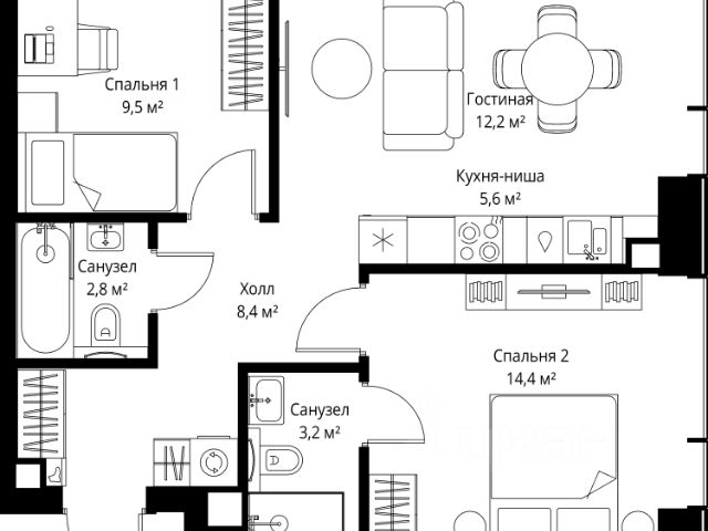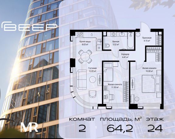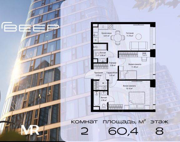 Старт продаж новой очереди! Продаётся 2-комнатная квартира общей площадью 60.07 м² без отделки в ЖК Веер на 2-м этаже 38 этажного дома. Веер.2 — вторая очередь футуристичного квартала бизнес-класса Веер. Это новая экосистема в престижном Западном округе Москвы, поражающая масштабностью внутренней инфраструктуры. ЖК находится всего в 5 минутах от Кутузовского проспекта и в 15 минутах от Сколково. Ансамбль из четырех стеклянных башен с доминантой в 237 метров разработан по принципу современного урбанизма и выражен в лаконичных объемах — параллелепипедах со сглаженными углами, которые придают зданиям утонченный вид. Расположение и транспортная доступность: • Образовательный комплекс в составе топовой школы, состоящий из двух зданий: основное на 1500 школьных и 450 дошкольных мест, отдельное здание детского сада на 300 мест. • Парк "Долина реки Сетунь" площадью более 700 гектаров • Рядом МГУ, МГИМО, РАНХиГС и Академия ФСБ • 15 минут по Кутузовскому проспекту до ужина в центре с видом на Москву-реку • 18 минут пешком до м. "Давыдково" • Открытие новых станций метро в шаговой доступности в будущем Инфраструктура: Двор в Веер.2 — это ассиметричные холмы, каменные "лабиринты", зеленые ковры и хвойные островки с единой живой экосистемой. Здесь есть все: • Павильон умиротворения Место отдыха под навесом в спокойной части двора, окруженное деревьями. • Активная тропа Тактильная дорога из камней разного диаметра для расслабляющих прогулок. • Бизнес-гарден Оборудованное пространство для работы на свежем воздухе со столом и встроенными розетками. • Детская площадка Двухуровневая площадка "Ботаника" с песочницей, переговорной трубой и горкой "Дружба". Компания MR предлагает своим клиентам специальные условия приобретения квартир в рамках программ ипотечного кредитования от банков-партнеров.