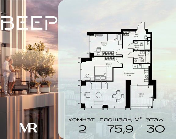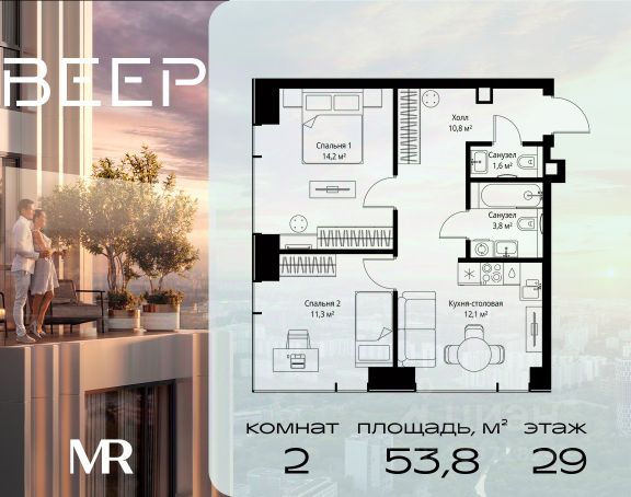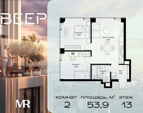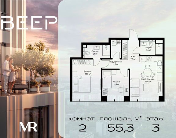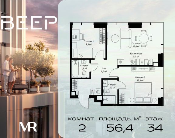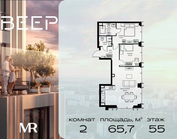 Старт продаж новой очереди! Продаётся 2-комнатная квартира общей площадью 60.22 м² без отделки в ЖК Веер на 21-м этаже 70 этажного дома. ВЕЕР.2 — это вторая очередь жилого комплекса бизнес-класса в престижном ЗАО, где реализована концепция 15-минутного города. Всё, что нужно для комфортной жизни, работы и отдыха, находится в шаговой доступности: офисный и спортивный кластеры, государственная рейтинговая школа 1329 и детский сад, центры творчества, ресторанный бульвар, фитнес и спа-центр с 25-метровым бассейном. • Архитектура и лобби ВЕЕР.2 — это ансамбль из четырёх стеклянных башен от бюро Kleinewelt Architekten, объединённых стилобатом с благоустроенным закрытым двором без машин. Моллированные окна обеспечивают максимум естественного света и ощущение простора. В каждой башне — роскошное лобби от испанского бюро Jaime Beriestain Studio: высокие потолки, обилие живых деревьев, природные материалы и палитра природных оттенков создают атмосферу Люксембургского сада прямо у вас дома. Двухуровневое гранд-лобби с коворкингом и библиотекой станет центром встреч с друзьями и соседями. В каждом лобби предусмотрены лапомойки и просторные колясочные. • Двор и инфраструктура Двор ВЕЕР.2 — это настоящий оазис северной природы: тактильная тропа, сад камней, асимметричные холмы, хвойные островки и павильон для отдыха. Для работы на свежем воздухе — бизнес-гарден, для занятий спортом — пространство для йоги и сайкла. Здесь всё продумано для поддержания гармонии в суете жизни. • Спорт и досуг Трёхуровневый фитнес и СПА-центр на 4000 кв.м с 25-метровым бассейном под прозрачной крышей, кардио- и силовыми залами, а также пространством для групповых занятий — всё это рядом с домом. • Планировки и технологии В комплексе представлены продуманные планировки: панорамные кухни-гостиные, гардеробные даже в небольших лотах, разделение на гостевую и приватную зоны, кладовые при кухнях. Малоэтажные уютные секции с 25 квартирами на этаже и с эксплуатируемой кровлей подойдут тем, кто ищет уединения. ВЕЕР.2 оснащён умной инженерией: скоростные лифты премиум-класса Sword, система считывания номеров в паркинге, гостевой Wi-Fi, приточно-вытяжная вентиляция, внутрипольные конвекторы. Безопасность обеспечивает отдельный вход для курьеров и современные системы охраны. • Парковка и сервис Для жителей предусмотрен удобный двухуровневый паркинг на 736 машиномест с прямым доступом из лобби, зарядками для электромобилей, зонами разгрузки, кладовыми и велопарковками.