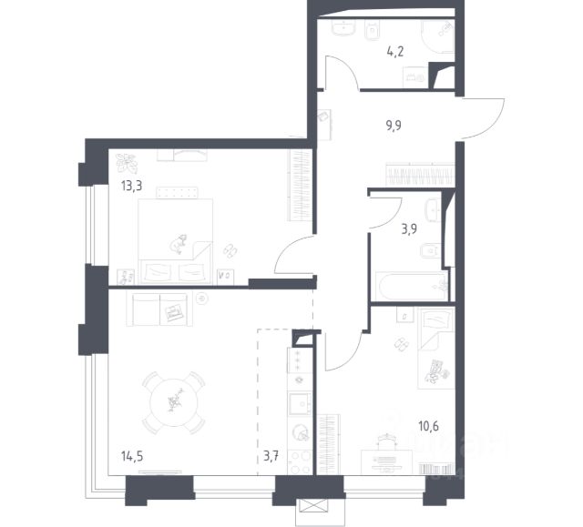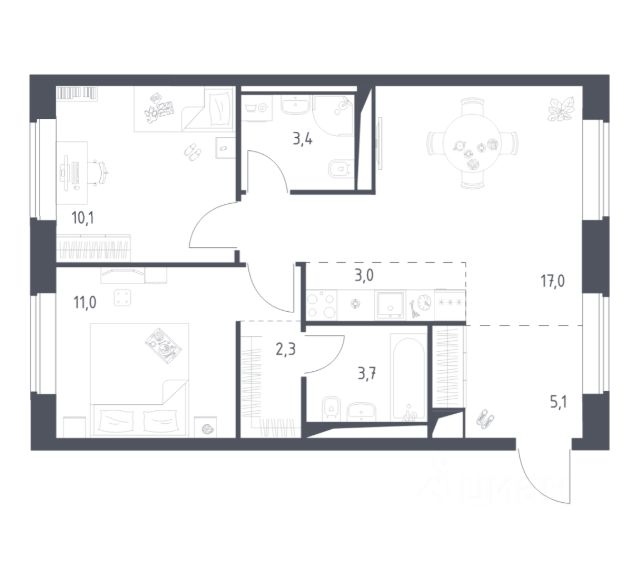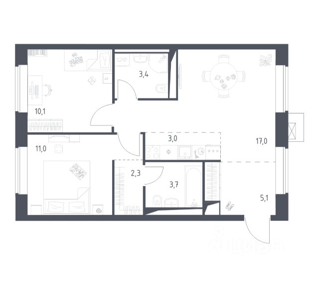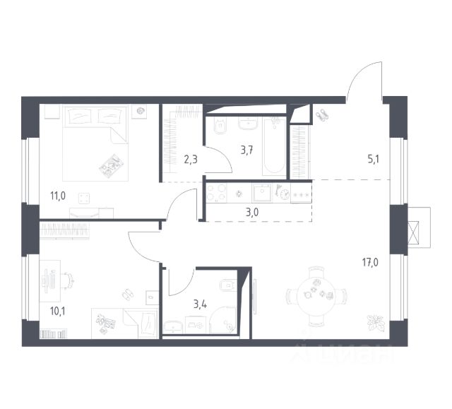 Эта квартира станет идеальным выбором для тех, кто ценит удобство, комфорт и современный подход к организации пространства.