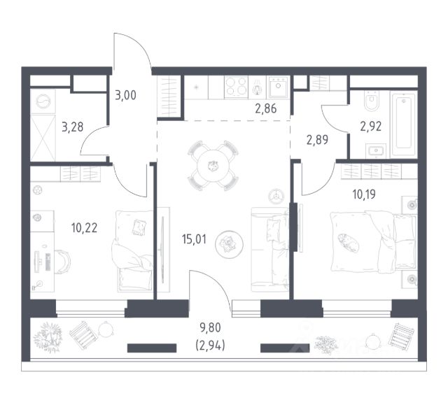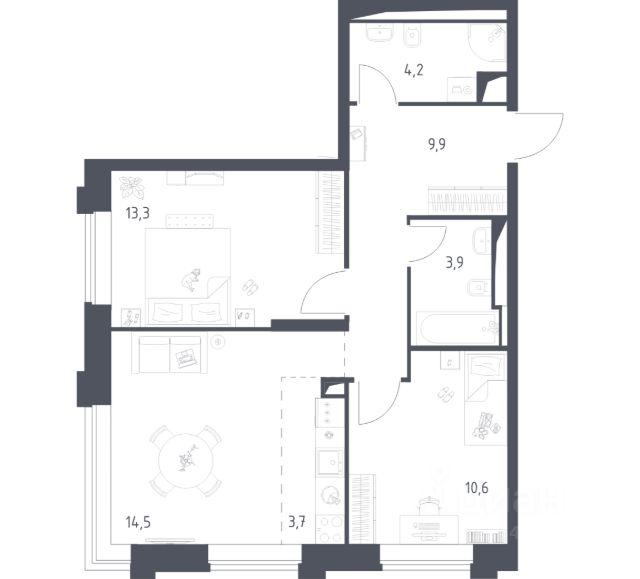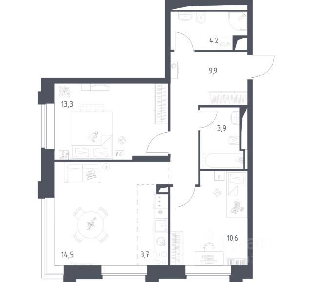 Лот расположен на 9 этаже и порадует Вас продуманной планировкой, которая сочетает в себе комфорт и функциональность. Здесь есть просторная гостиная, объединённая с кухней, светлые спальни и две полноценные ванные комнаты. Все помещения оборудованы стильной мебелью и современной техникой, что делает это жильё готовым для проживания. Панорамные окна создают ощущение простора и наполняют квартиру естественным светом, а вид на благоустроенную придомовую территорию добавляет особого очарования.