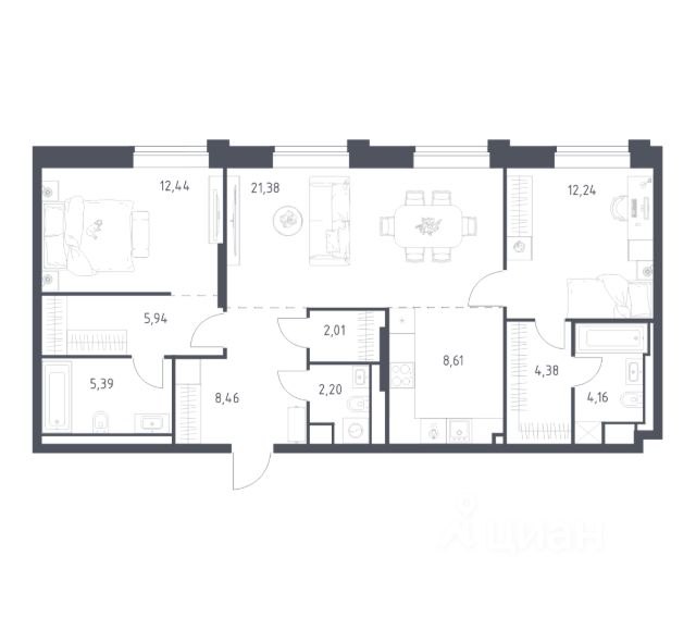 Обратите внимание на уютную трёхкомнатную квартиру в современном жилом комплексе Верейская 41.