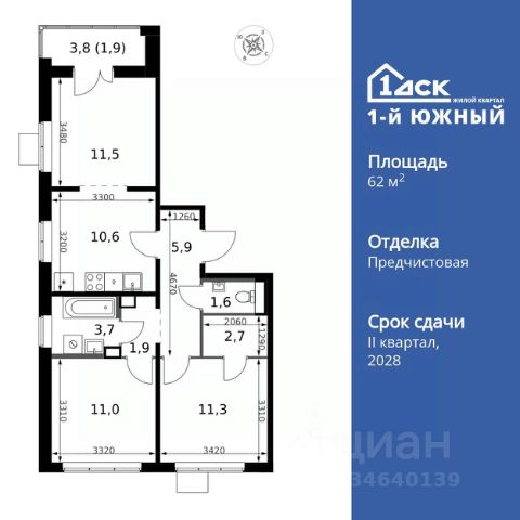 Прямая продажа от застройщика! Жилой Комплекс класса Комфорт Плюс. Продаётся 3-к квартира номер 118 общей площадью 69.2 кв.м. на 3-м этаже 23 этажного здания. Предчистовая отделка. Цена с учётом скидки. Особенности квартиры: - МЦД-5 в пешей доступности - Квартал с южным садом - Свои 3 детских сада и 2 большие школы - Организуем показ в удобное для вас время! - Просторная спальня, в которой можно разместить большую кровать. - Угловая планировка - больше пространства для ваших идей. - Увеличенное количество окон - дополнительное освещение и свежий воздух. - Гостевой санузел - комфорт и удобство для ваших гостей. - Евроформат - просторное и удобное жилье с отличной планировкой. - Линейная кухня - функциональность и практичность в одном решении. - Возможность добавить спальное место - дополнительный комфорт для гостей. - Гардеробная - удобство для хранения и организации вещей. - Ниша под шкаф - компактное и удобное место для вещей. - Лоджия - уютное место для отдыха и тишины. Квартира с предчистовой отделкой. Вам не придется заниматься черновыми и трудоёмкими работы, а чистовую отделку и дизайн - сделайте на свой вкус. Информация о комплексе: ЖК от 1-го ДСК: евро формат, большие застеклённые лоджии и умный дом. Управляйте светом и техникой через Яндекс.Станцию, защита от протечек. Удачная локация: транспортная доступность и природа рядом. В каждом дворе - плодовые деревья, весной цветут яблони и груши, зимой - лыжня среди заснеженного леса. Транспортная доступность: - Общественный транспорт: Действующая ж/д станция Булатниково (в перспективе будущая МДЦ D5) в пешей доступности, всего 10-12 минут. - Личный автотранспорт: Удобный выезд на трассу М4-Дон в сторону Москвы и области 850 м, до МКАД - 1 км Внутренняя инфраструктура: "1-й Южный": продуманные подъезды с панорамным остеклением и входами с улицы и двора. Безбарьерная среда для родителей с колясками и маломобильных жителей. В каждом подъезде - колясочные, лапомойки, санузлы, место для консьержа. На территории: 3 детских сада и 2 школы под окнами, пешеходный бульвар-дендрарий для прогулок, центральная площадь для мероприятий. Всё для комфортной жизни, общения и активностей в шаговой доступности. Квартира с предчистовой отделкой - ваш дизайн без черновых работ