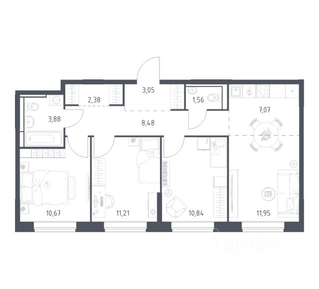 ДОПОЛНИТЕЛЬНАЯ СКИДКА ДО 10% В ОФИСЕ ПРОДАЖ! Прямая продажа от застройщика! Жилой Комплекс класса Комфорт Плюс. Продаётся 3-к квартира номер 384 общей площадью 70.2 кв.м. на 23-м этаже 24 этажного здания. Отделка Whitebox. Цена с учётом скидки. Особенности квартиры: - МЦД-5 в пешей доступности - Квартал с собственной набережной - Свои 2 детских сада и школа - Просторная спальня, в которой можно разместить большую кровать. - Гостевой санузел - комфорт и удобство для ваших гостей. - Евроформат - просторное и удобное жилье с отличной планировкой. - Просторная кухня - место для семейных ужинов и кулинарных экспериментов. - Просторная мягкая зона - комфорт и уют для отдыха всей семьи. - Возможность добавить спальное место - дополнительный комфорт для гостей. - Гардеробная - удобство для хранения и организации вещей. - Лоджия - уютное место для отдыха и тишины. Квартира с предчистовой отделкой (White box). Вам не придется заниматься черновыми и трудоёмкими работы, а чистовую отделку и дизайн - сделайте на свой вкус. Информация о комплексе: Комплекс 1-й Донской расположен в 7 км от МКАД по трассе М-4 Дон. В нем сочетаются все плюсы комфортной городской среды и природного окружения. В проекте достаточно большой процент квартир, выходящих на 2-3 стороны света. Секции-маяки формируют у зданий визуальную L-форму, что придает застройке структуру и ритмику объемов. На ощущение динамики работает и разная этажность зданий. Теплая цветовая палитра фасадов отражает природу Дона. Вечерами дома преображаются благодаря архитектурной подсветке, выгодно выделяясь на городском фоне. Природа оказывает положительное влияние на человека на всех уровнях восприятия: через зрение, запахи, звуки, тактильные ощущения. Неподалеку от ЖК Первый Донской: Ермолинский парк, Видновский лесопарк, Жуковский парк Транспортная доступность: Комплекс удобно расположен в 7 км от МКАД по трассе М-4 Дон (через Видное). Расстояние до Каширского шоссе составляет 12 км. Добраться до метро и центра Москвы позволяет развитая сеть маршрутов общественного наземного транспорта. Действующая ж/д станция Калинина Павелецкого направления в 15-17 минутах ходьбы (МЦД-5 в 2025-2026 гг). Внутренняя инфраструктура: Проект 1-й Донской соседствует с бурно развивающимся районом, основная инфраструктура которого уже сложилась. В строительстве современных жилых комплексов в округе есть свои плюсы: здесь формируется продуманная и комфортная городская среда. Что касается внутренней инфраструктуры, на территории квартала будут расположены собственные муниципальные 2 детских садика и школа, которые помогут совместить приятное с полезным. Территория комплекса пронизана целой сетью живописных пешеходных маршрутов, позволяющих попасть в любой уголок района. Основные пути, как водится, "торговые". Они проходят вдоль магазинов, кафе и других представителей коммерции и отделяются от проезжей части зеленой "фито" - стеной. Среди крупных социальных объектов предусмотрены своя полик