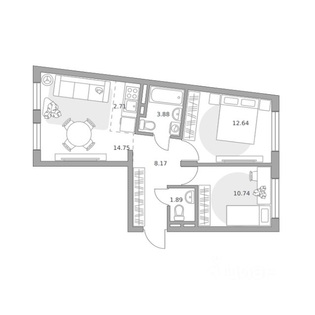 Продаётся 3-комнатная квартира 399, площадью 50,75 м², на 12 этаже в ЖК "Аникеевский" корпус 1.1. Стоимость — от 10461338 руб. Квартира без отделки, планировка односторонняя, окна на улицу.