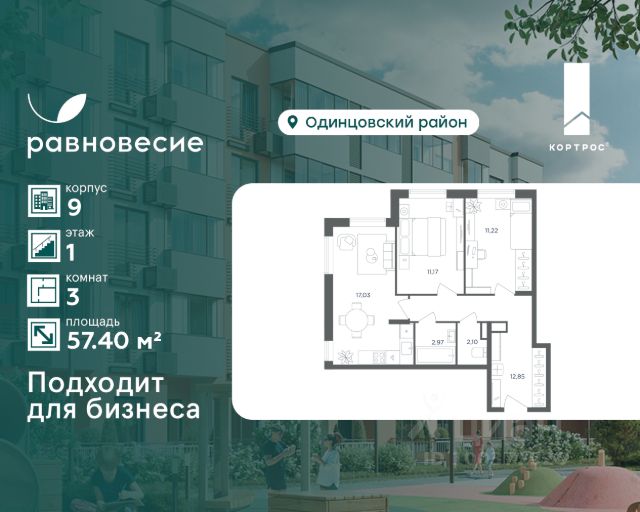 Указанная акционная стоимость доступна при 100% оплате или ипотеке без субсидирования. Цена действует до 01.04.2026 23:59:00. Стоимость без акции 17723294. Продаётся квартира с 3 комнатами общей площадью 63.50 кв. метров на 4 этаже жилого квартала комфорт-класса "Равновесие". На территории комплекса будет возведен детский сад на 360 мест, а на первых этажах жилых домов откроются кафе, магазины и все необходимое для удобства жителей. Локация "Равновесия" выделяется среди других пригородных ЖК разнообразием быстрых маршрутов до Москвы. Для автомобилистов преимуществом станут удобные выезды на Можайское шоссе, Рублёво-Успенское шоссе, Минское шоссе с платной трассой и другие. Также в пешей доступности находятся две ж/д станции — "Жаворонки" и "Здравница". Дорога на электропоезде до делового центра "Москва-Сити" составит всего 35 минут. Особенности ЖК: - Малоэтажная застройка: 4-6 этажей; - Благоустроенный пешеходный бульвар; - Пространства для отдыха и спорта; - Квартиры с террасами на последних этажах; - Квартиры с отдельным входом на первых этажах; - Внутренняя территория квартала свободна от машин; - Безбарьерная среда; - Помещения для хранения детских колясок и спортивного инвентаря.