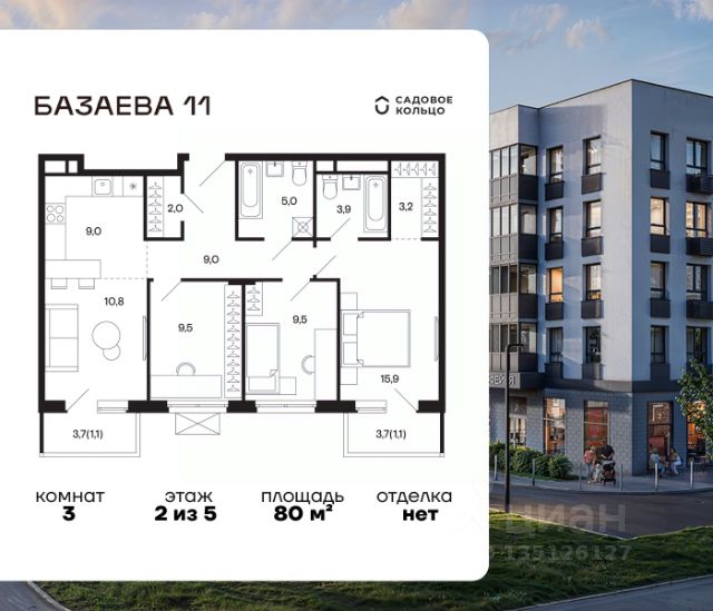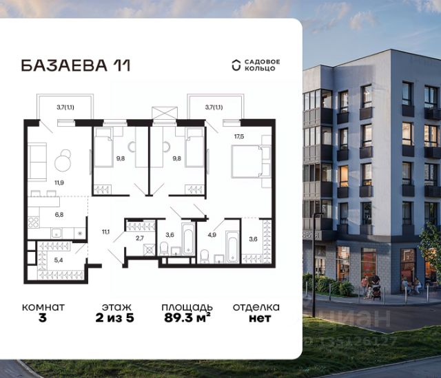 Продается квартира в ЖК "Базаева, 11" с 3 спальнями на 5 этаже 5 этажного дома. Общая площадь: 84.8 кв.м. Высота потолков 2.72 м. Срок сдачи 2 квартал 2027 г. Эскроу-счет. Застройщик ГК "Садовое кольцо". -Расположение Жилой комплекс в экологически чистом районе Московской области городском округе Шаховская. Камерное пятиэтажное здание находится в пешей доступности от всей необходимой инфраструктуры. Автостанция Шаховская расположена в 10 минутах от дома. Всего в 11 минутах ходьбы находится ж/д станция Шаховская, откуда удобно добраться электричкой до Рижского вокзала. Дорога до МКАД займет 1,5 часа на автомобиле. -Инфраструктура Проект расположен рядом с современным теннисным центром и Дворцом торжеств. В шаговой доступности — детская школа искусств, Шаховская гимназия, школа 1 и три детских сада. Всего за 3 минуты от дома можно дойти до Городского парка — здесь вас ждут аттракционы, верёвочный городок, тюбинговая горка и ресторан. Парк соседствует с живописным сквером у реки, украшенным подвесными мостами, ротондой и фонтанами. -Внутренний двор На территории проекта появится огороженная детская площадка, рассчитанная на детей всех возрастов, — с песочницей, канатным комплексом и зоной для игр. Для любителей активного образа жизни будет обустроена спортивная площадка с теннисным столом, турниками, тренажёрами и гимнастическими брусьями. Для автовладельцев на территории проекта предусмотрена удобная плоскостная парковка на 81 машино-место. -Архитектура Монохромное здание оформлено декоративным кирпичом и штукатуркой в тёплых светло-серых и насыщенных серых тонах. Эстетику фасада подчёркивают террасные ограждения и корзины для кондиционеров, выдержанные в единой цветовой гамме. -Входная группа Входные группы спроектированы на уровне земли — без ступеней и перепадов. Такой подход обеспечивает комфортный доступ в подъезд с коляской, чемоданом или велосипедом и подчеркивает продуманную архитектуру дома.