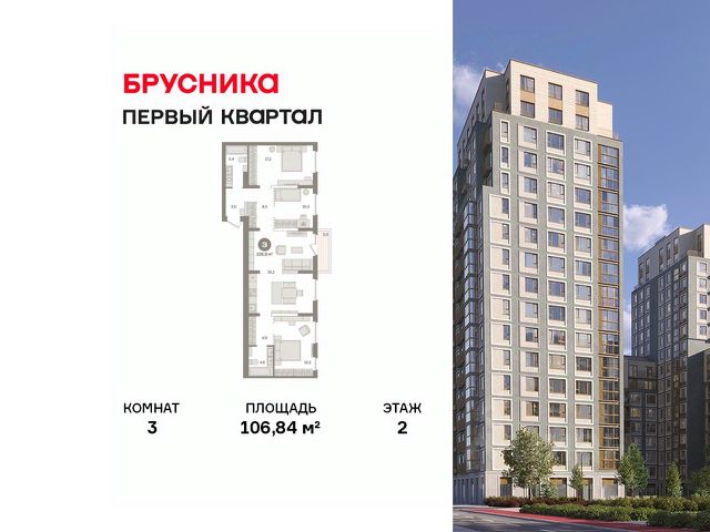Продаётся с кладовой. Квартира с кухней-гостиной и тремя спальнями в "Первом квартале". Особенности планировки: вид во двор, второй санузел, гардеробная, мастер-спальня, окна в пол, панорамное остекление, свободная планировка, терраса. квартиры в нашей базе: МТК04-Ж2.1.1.