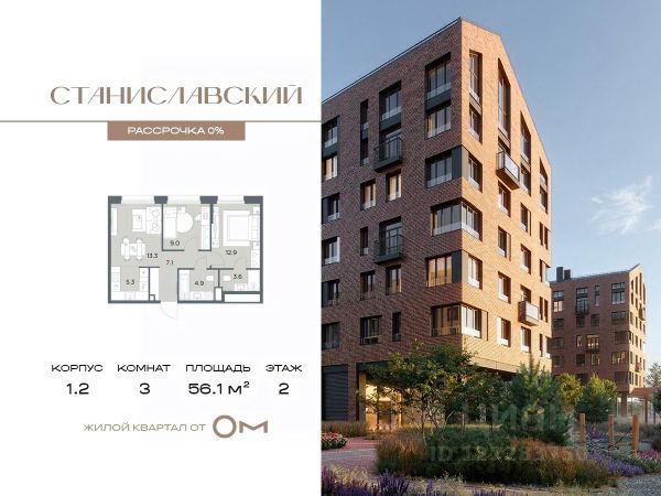 - З изолированные комнаты площадями: 13,1 кв.м, 12,6 и 18 кв.м.