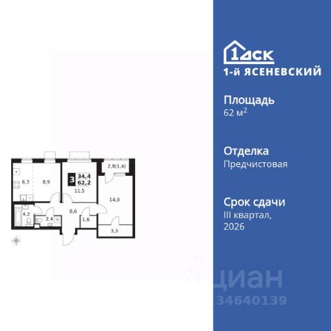 ДОПОЛНИТЕЛЬНАЯ СКИДКА ДО 10% В ОФИСЕ ПРОДАЖ! Прямая продажа от застройщика! Жилой Комплекс класса Комфорт Плюс. Продаётся 3-к квартира номер 672 общей площадью 62.2 кв.м. на 8-м этаже 18 этажного здания. Отделка Whitebox. Цена с учётом скидки. Особенности квартиры: - Квартиры рядом с метро - м. Корниловская 9 мин пешком - 63 га лесопарка за окнами - Школа c it-кластером и бассейном. 2 детских сада - Мастер-зона с гардеробной. Просторное место для отдыха и удобного хранения вещей. - Линейная планировка - максимальная функциональность и удобство. - Увеличенная ширина окна/окон - больше света и визуального простора. - Увеличенное количество окон - дополнительное освещение и свежий воздух. - Гостевой санузел - комфорт и удобство для ваших гостей. - Евроформат - просторное и удобное жилье с отличной планировкой. - Можно оборудовать 2 или более рабочих места - пространство для нескольких человек. - Возможность добавить спальное место - дополнительный комфорт для гостей. - Гардеробная - удобство для хранения и организации вещей. - Лоджия - уютное место для отдыха и тишины. Квартира с предчистовой отделкой (White box). Вам не придется заниматься черновыми и трудоёмкими работы, а чистовую отделку и дизайн - сделайте на свой вкус. Информация о комплексе: В жилом комплексе комфорт-плюс класса "1-го Ясеневского" доступны преимущества двух стилей жизни. Ведь в пешей доступности метро, школа с 25-метровым бассейном и IT-кластером и при этом целых 63 га благоустроенного Троицкого лесопарка под окнами, где так приятно дышать свежим воздухом и слушать пение птиц. Собственная закрытая территория "1-го Ясеневского" представляет собой уютный оазис. Здесь и зеленый освещенный бульвар для прогулок, система велодорожек, маленькая городская площадь, кафе, пекарни и кофе поинты. А еще дворы без машин и многоэтажная парковка. Изюминка территории - фруктовые деревья во дворах и городские сады. "1-й Ясеневский" - всего в 1 км от МКАД, на территории новой Москвы. Жилой комплекс, где есть все необходимое для современного человека. Транспортная доступность: До метро "Корниловская" - 12 минут пешком До метро "Тютчевская" - 25 минут пешком До метро "Теплый стан" - 10 минут на транспорте До метро "Ольховая" - 30 минут на общественном транспорте Личный автотранспорт: Выезд на Калужское шоссе - 500 м МКАД - 1 км Внутренняя инфраструктура: ЖК "1-й Ясеневский" можно назвать идеальным местом для жизни семьи с детьми. Здесь буквально за домом находится Троицкий лесопарк - излюбленное место прогулок молодых родителей. А во внутренних дворах под детские площадки выделены специальные зоны. Они оборудованы всем, что нужно для счастливого детства: современными и максимально безопасными качелями, песочницами и лазалками. Оборудование и игровые сценарии на детских площадках спроектированы вместе с командой детских психологов для правильного развития ребенка и для повышения их интереса. Также рядом с домом два детских садика, один из которых