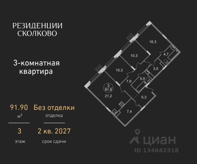 Прямая продажа от застройщика. Продаётся 3-комнатная квартира общей площадью 91.55 м² без отделки в премиальном жилом комплексе "МЫС" на 2-м этаже 12 этажного дома. Квартира расположена в корпусе "Сибирь". Проект МЫС — это, прежде всего, идеальное место для семей. В рамках проекта построят государственную школу, два детских сада и дворец спорта площадью 20 000 м2 с термальным комплексом, выплывным бассейном, фитнес-залом, теннисными, сквош и падел кортами и секциями для детей. На территории площадью, сравнимой с тремя парками Зарядье, появятся кафе и рестораны, пруд с набережной, спортивные и детские площадки, скейт-парк, лыжные и веломаршруты. Расположение: - 2 минуты до скоростной трассы М1 и Минского шоссе; - 10 минут до МКАД; - 15 минут до МЦД Лесной Городок - 20 минут до делового центра "Москва-Сити"; - 28 минут до аэропорта "Внуково". Благоустройство: - велосипедные и лыжные маршруты; - собственная набережная и парк; - лаунж-зоны в окружении природы; - беседки у очага; - дворец спорта площадью 20 000 м²; - термальный комплекс с тремя бассейнами; - 4 теннисных и падел-корта; - 6 сквош-кортов; - многофункциональный спортзал; - скейт-парк; - просторная площадь для прогулок с фонтаном; - детский клуб с творческими секциями; - гастро-доминанта; - кафе у пруда, рестораны, ритейл. Окружение - соседство с лесным фондом; - школа на 1250 мест и 2 детских сада на 350 и 255 мест; - Дубковский и Подушкинский леса, парк "Рассказовка", Мещерский парк. Действуют специальные условия при 100% оплате, подробности уточняйте у менеджера в офисе продаж. Продам 3-комнатную квартиру 90 м2 (квадратных метров) в Московской области.