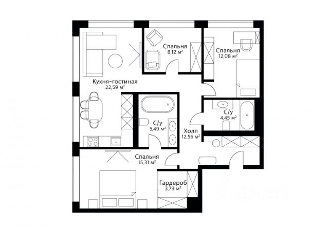 О квартире Продаётся 3-комнатная квартира общей площадью 89 кв.м. без отделки. Квартира расположена на 6 этаже корпуса 5.7 в жилом комплексе бизнес-класса "Среда на Лобачевского" в пешей доступности от метро "Аминьевская". О жилом комплексе "Среда на Лобачевского" полностью соответствует критериям современного жилого пространства. Взяв за основу рациональный подход, мы гармонично соединили дизайн, актуальные тренды и функциональность. Продуманный современный экстерьер и функциональные планировки внутри, приватные пространства и разнообразные досуговые зоны для каждого члена семьи — все это "Среда на Лобачевского". Инфраструктура Район отлично развит и наполнен жизнью, здесь уже есть вся необходимая инфраструктура — детские сады, школы, медучреждения, торговые центры, благоустроены парки для прогулок и отдыха, удобен и легкодоступен городской транспорт. Рядом расположены учебные корпуса крупных университетов — МГУ, МГИМО и РАНХиГС. Школы и детские сады в районе занимают высокие позиции в городских рейтингах, поэтому вам не придется беспокоиться о качестве образования детей. Как и об отдыхе: поблизости расположены живописные пруды, реки и парки. Это Парк Олимпийской деревни, Парк имени 50-летия Октября, Мещерский парк и Очаковские пруды. Теперь поставить галочки в еженедельном чек-листе "спорт-прогулки-встречи с друзьями" можно, не покидая любимый район. Особенности Особое внимание в проекте уделяется созданию функциональных пространств не только внутри дома, но и за его пределами. В ландшафтном парке "Среды на Лобачевского" расположены крытые зоны для спокойного времяпровождения, места для активного отдыха и спорта, коворкинг, соседский комьюнити-центр, водные объекты. —Ландшафтный парк во дворе. —Водный сад с зонами отдыха. —Зоны коворкинга. —Дизайнерские гранд-лобби. —Бесключевой доступ. —Подземный паркинг. Купить 3-комнатную квартиру площадью примерно 90 м2 (кв.м.) в Москве.