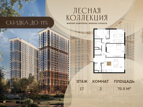 Выгода до 11%. Продажа напрямую от застройщика в жилом комплексе Лесная Коллекция! 3-комнатная квартира на 17-этаже, площадью 79.9-квм. Лесная Коллекция — это продуманный жилой комплекс для тех, кто хочет жить в комфортной городской среде и при этом быть рядом с природой. Удачное расположение, развитая инфраструктура и закрытая территория делают проект удобным для повседневной жизни. Удобная локация и транспорт • Быстрый выезд на Путилковское шоссе • Близость станции метро "Планерная" • Три железнодорожные станции рядом: Химки, Левобережная, Ховрино • Более 40 автобусных маршрутов Локация позволяет легко добираться как в центр города, так и в соседние районы. Территория и окружение • Соседство с престижным районом Куркино • Закрытая благоустроенная территория без сквозного движения • Пространства для прогулок и занятий спортом • Двор примыкает к лесному массиву • Архитектура комплекса выдержана в сдержанном, респектабельном стиле • До 70% окон ориентированы на парк Квартиры и планировки • Удобные и функциональные планировочные решения • Формат комфорт-класса по разумной цене • Максимум естественного света за счёт удачного расположения корпусов Инфраструктура внутри комплекса • Детский сад на территории на 140 мест • МФЦ для решения повседневных вопросов • Коммерческие помещения на первых этажах • Магазины, кафе и салоны красоты прямо в доме • Собственный паркинг рядом с домом Всё необходимое рядом • 78 муниципальных и 42 частных детских сада • 40 школ, включая гимназии и лицеи • 6 колледжей и техникумов • 5 вузов поблизости • Крупные торговые центры и рынки в удобной доступности О застройщике Проекты застройщика "Град Девелопмент" — это более 600 тыс. кв. м реализованной недвижимости, включая клубные форматы и жильё бизнес-класса. Компания известна качеством строительства и соблюдением сроков.