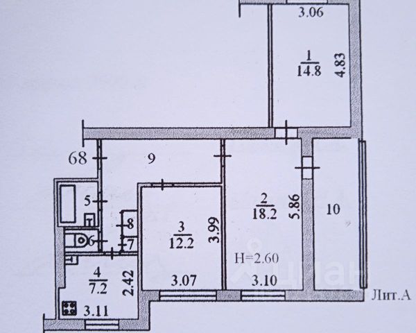 Общая площадь: 60,6 кв.м.