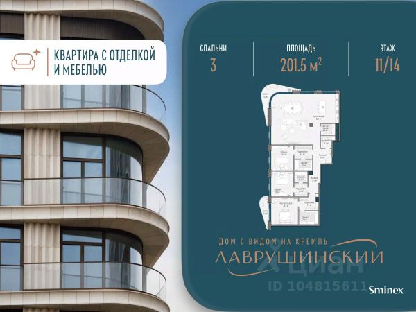 "Лаврушинский" - бескомпромиссный дом с лучшими видами на Кремль. Благодаря расположению всего в одном километре от Кремля, своей высоте и малоэтажной окружающей застройке, из квартир открываются поразительные прямые виды на главные достопримечательности центра Москвы, включая храм Христа Спасителя и собор Василия Блаженного. Расположение в глубине квартала, посередине парка, дает удивительное для центра ощущение тишины и простора. На закрытой территории находится самый большой на элитном рынке собственный ландшафтный парк площадью 1,4 га с фонтаном, ручьём, зонами для воркаута и тихого отдыха. KIDS LAB: развивающая детская площадка на улице и игровая комната в помещении. FIT LAB: фитнес-клуб с 25-метровым бассейном, beauty room, доступные только для жителей. В проекте уникальный выбор квартир с просторными балконами, пентхаусов с террасами, бассейнами и каминами, максимальными видовыми характеристиками, а также роскошных вилл. Всего - 153 квартиры и 101 продуманное планировочное решение. Высота потолков составляет от 3,5 до 8,25 м. В доме предусмотрен 2х-уровневый паркинг на 279 машино-места. В доме предусмотрен полный комплекс систем комфорта, включающий приточно-вытяжную вентиляцию с тонкой фильтрацией с принципом забора воздуха с высоты 50 метров для повышения продолжительности жизни, отдельный сервисный лифт для обслуживающего персонала и другие современные системы.