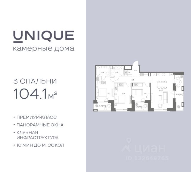 • ✅ Объект наибольшей площади: 107,5 м²