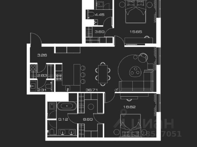 Трёхкомнатная квартира с лучшей планировкой в домах ЖК "Квартал на Ленинском". Окна выходят на противоположные стороны. Квартира состоит из прихожей, холла, гардеробной для верхней одежды, кухни (17,7 м2) с лоджией, просторной гостиной (44,7 м2), двух больших спален (24,3 и 20,3 м2), с выходами на балкон и лоджию, двух ванных комнат (8,0 и 8,4 кв.м). Высота потолка 3,1 м.