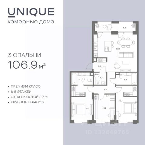 Цены указаны с условием 100% оплаты и стандартной ипотеки. Прямая продажа от застройщика! Продается 3-к. квартира квартира номер 723 общей площадью 107.9 кв.м. на 3-м этаже 7 этажного дома, корпус UNIQUE (премиум-класс). Без отделки. Проект бизнес-класса Soul от девелопера FORMA. До метро Сокол 11 мин пешком. Архитектура от британского бюро SimpsonHaugh. Благоустройство дворов — Gillespies. Центральная площадь с фонтанами и местами для отдыха. Оборудованные детские и спортивные площадки. В центре проекта объект культурного наследия — общественное пространство Изофабрика, построенная в 30-х годах по проекту архитектора Георгия Гольца. Здесь будут располагаться мастерские для взрослых и детей, образовательный центр, рестораны и кафе. Квартиры с панорамными окнами, французскими балконами, мастер-спальнями и гардеробными. Высота потолков от 3,1 м. На последнем этаже 3,5 м. В проекте 2 детских сада на 100 и 200 малышей. Фит-рум, коворкинг, дизайнерские лобби, подземный паркинг и келлеры.