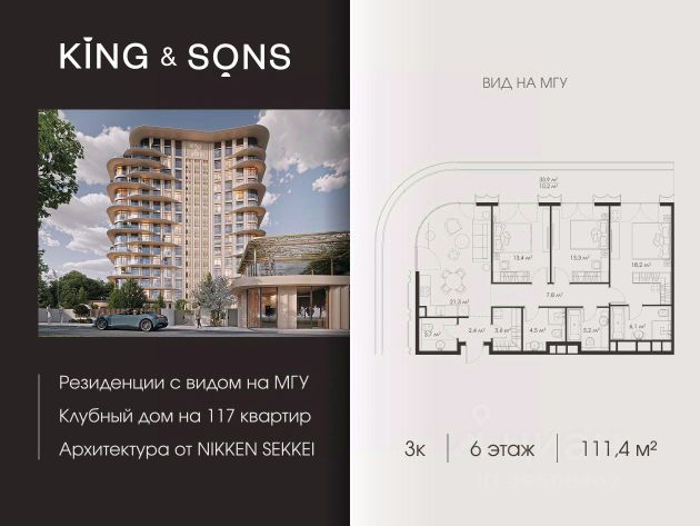Комфортная и продуманная до мелочей 3-спальная квартира площадью 98.70 кв. м на 13 этаже в клубном доме 10. Увеличенная площадь окон и высота потолков 3.00 м дарят впечатляющие виды на парки, зеленые зоны и природные заказники. West Garden - это собрание клубных домов высотой 12-14 этажей в собственном парке 16 гектаров вдоль реки. Просторный среднеэтажный квартал расположен на Минской улице, в респектабельном Западном округе столицы. Вокруг премиальное окружение и более 1000 гектаров парков. West Garden - это возможность обеспечить себе и своей семье лучшие условия для жизни в одном из самых привлекательных и зелёных районов столицы. Гармония природы дополнена здесь впечатляющими возможностями и привилегиями: • Расположение в зелёном Западном районе столицы вблизи центра и ключевых магистралей в окружении парковых зон (заказник "Долина реки Сетунь", Мосфильмовский пруд, Ботанический сад МГУ, природный заказник "Воробьёвы Горы", Парк Победы на Поклонной горе) • Современная лаконичная архитектура, у каждого дома свой индивидуальный облик и выразительный фасад с использованием натуральных и долговечных материалов (гранит, известняк, клинкерный кирпич) • Функциональные лобби с отделкой из дерева и натурального камня с высокими потолками до 7,8 м • Самый большой собственный парк для прогулок и отдыха: 8 га собственной закрытой и благоустроенной территории, а также 8 га прилегающего парка на набережной с зонами отдыха с шезлонгами, маршрутами для бега, пеших и велосипедных прогулок • Инфраструктурный центр Clubhouse только для жителей: клубная гостиная с террасой и творческой атмосферой по фирменному стандарту Friend`s Lab, детская игровая зона 300 кв. м по стандарту Kid`s Lab • Насыщенная и разнообразная инфраструктура для детей любого возраста: 8 развивающих детских площадок в парке, 3 детские площадки на благоустроенной набережной, площадка для отдыха и досуга подростков • Спортивная инфраструктура по стандарту Fit Lab: многофункциональные площадки для футбола, баскетбола, волейбола с трибуной для болельщиков, зона воркаута, теннисные столы, зона для йоги, беговая дорожка 3 километра, фитнес-центр только для жителей • Комфортный и просторный подземный паркинг на 1313 машино-мест, 482 келлера, автомойка только для жителей на четыре поста
