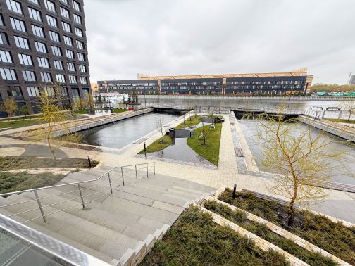 ЖК "Риверпарк Коломенское" — современный проект бизнес-класса на берегу Москвы-реки. Ключевое преимущество — собственная благоустроенная набережная протяжённостью более 1,5 км с прогулочной зоной, велодорожками, спортивными площадками, качелями и лежаками. Закрытая территория, куда нет доступа посторонним: на стилобате между корпусами — мосты, детские площадки, зоны отдыха. Можно просто выйти из дома и любоваться речными пейзажами и водными трамваями.