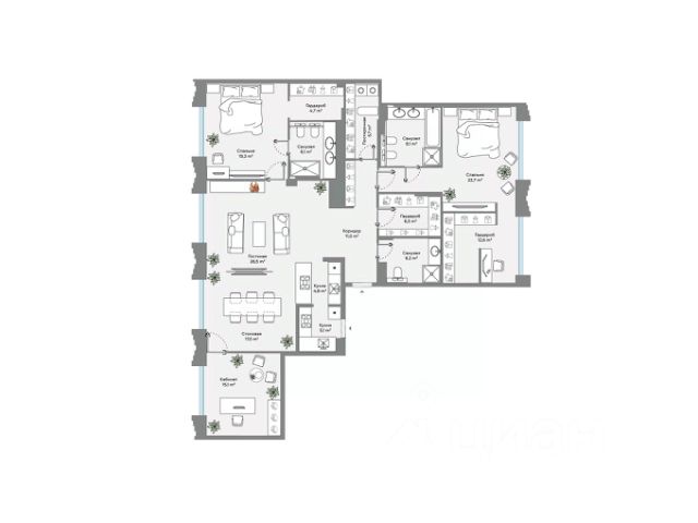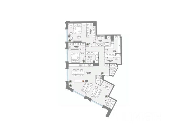 Пентхаус с бескомпромиссными видами на Кремль из собственной спальни. Живите на высоте в пентхаусе дома "Лаврушинский" с дровяным камином и собственной террасой. Откройте для себя непревзойденные виды на Москву - из панорамных окон кухни-гостиной и собственной спальни открываются все "сто лиц" российской столицы. Купеческие особняки Замоскворечья, створ Лаврушинского переулка, золотые купола Кремля и храма Христа Спасителя, сталинские высотки и небоскрёбы Москва-Сити, Марфо-Мариинская обитель предстают как на ладони. На просторной террасе есть обеденная зона, лаундж-пространство, лежаки для принятия солнечных ванн и хот-таб. • Мастер-спальня с видом на Кремль • Балкон • Приватная терраса с хот-табом • Дровяной камин