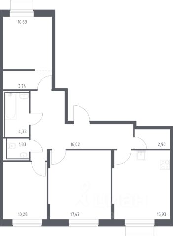 Высота потолков 2,9 м. Идеальная планировка, в которой нет ни одного лишнего метра.