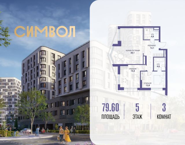 Скидка до 12% действует до 25.12.2025 г. при 100% оплате и не субсидированной ипотеке. Продается 3-комнатная квартира от застройщика: общая площадь 79.60 м², жилая 28.20 м², кухня 30.10 м², 5-й этаж, жилой квартал "Вдохновение", корпус 33 (секция 2). Срок сдачи: 4 квартал 2027 года. Позвоните сейчас и забронируйте квартиру! Квартал бизнес-класса СИМВОЛ - это городское пространство нового поколения в историческом районе Лефортово, на границе ЦАО, в 2 км от Садового кольца. Бионическая архитектура СИМВОЛА превратила Лефортово в суперсовременное и модное пространство. Из окон, с балконов и террас просторных квартир СИМВОЛА открываются отличные виды на город и новый парк "Зеленая река", "протекающий" через все кварталы комплекса на 2 км. В квартале уже есть все, что нужно для комфортной жизни: кафе и рестораны, супермаркеты и магазины, медицинские и физкультурно-оздоровительные центры, салоны красоты и барбершопы, аптеки и оптики, химчистки, пункты доставки и другие сервисы - всего более 90 действующих объектов внутриквартальной инфраструктуры. Для юных жителей СИМВОЛА открыты детский сад и инженерный лицей при МГТУ им. Баумана. Особенности квартала: • Свой парк "Зеленая Река" - 10 га зелени и развлечений на любой вкус! • Уникальная для Москвы архитектура - Проект создан архитектурной мастерской ATRIUM по дизайн-коду британских бюро LDA Design и UHA London. • Богатая инфраструктура с детскими садами и лицеем им. Баумана, кафе и ресторанами, супермаркетами и аптеками, зоной для фитнеса, бассейном и мед. центром. • Квартиры с панорамными окнами, террасами, ванными с окнами и каминами редких форматов. • Закрытые безопасные зелёные дворы-парки без машин!