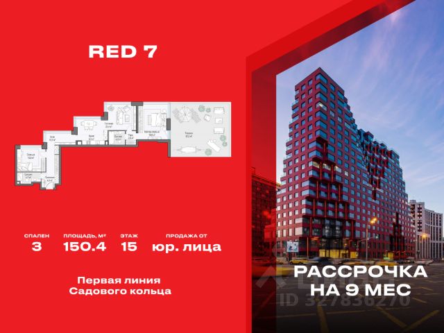 "RED7" - комплекс премиум-класса в самом сердце исторической Москвы, где каждая деталь продумана до мелочей. Продаются 3-к апартаменты площадью 79.5 кв.м. на 17-м этаже 19 этажного дома в RED7, расположенного в самом центре Москвы, на первой линии Садового кольца. До Кремля всего 2,4 км. В шаговой доступности метро "Красные Ворота", Чистые пруды, уютные парки, театры, рестораны и все городские удобства. Расположение RED7 расположен в историческом центре Москвы, всего в 2,4 км от Кремля. Это новая достопримечательность, дополняющая облик города и ансамбль иконических зданий Садового кольца. Рядом с RED7 находятся бизнес-центры и офисы крупных компаний, штаб-квартиры банков, посольства и, безусловно, лучшие рестораны, магазины и места культурного досуга. Архитектура проекта Архитектурная концепция RED7 разработана всемирно известным голландским бюро MVRDV, с 1991 года создавшее множество выдающихся образцов прогрессивной архитектуры в Нидерландах, Франции, Дании, Испании, США, Японии, Китае и - впервые - в России, шаг за шагом пришло к форме RED7 как ответу русскому авангарду и сталинской архитектуре из далекого будущего. Этот дом не просто выдающееся архитектурное событие, он задает тон и формирует архитектурную ДНК Москвы будущего. Инфраструктура проекта RED7 - не просто апартаменты, это шаг в будущее жилых и общественных пространств. В комплексе будет создана "небесная гостиная" - клубное пространство для жителей со спортивной зоной, кинотеатром, коворкингом и местами для отдыха. Инфраструктура RED7 с открытым доступом включает премиальный фитнес-центр площадью 3,5 тысячи кв. м с полноразмерным бассейном длинной в 25 м от, два ресторана от известных рестораторов, кафе, супермаркет премиального уровня, магазины и сопутствующие сервисы. Жители RED7 получают доступ ко всему набору сервисов дома, а общественные зоны дома создают идеальную атмосферу для общения, работы, развития и наслаждения жизнью. Технологии и материалы В апартаментах установлены полноразмерные панорамные окна в пол с шумоизоляцией от бельгийской компании Reynaers высотой до 4,5 метров. Особое внимание в RED7 уделяется микроклимату внутри дома: система вентиляции, очистки и кондиционирования воздуха в каждом апартаменте управляются удаленно через приложение iRED. В RED7 установлена система видеонаблюдения по всему комплексу, технология распознавания лиц и удаленный контроль охранных систем апартаментов. Паркинг Просторный 4-х уровневый паркинг расположен на подземных этажах. Количество машиномест - 284. Также предусмотрены кладовые, которые позволят освободить апартаменты от сезонных или редко используемых вещей Звоните и получите подробную консультацию, специалисты отдела продаж помогут выбрать наиболее подходящий вариант! Дистанционное оформление ипотеки, рассрочка и другие варианты покупки для вашего удобства.