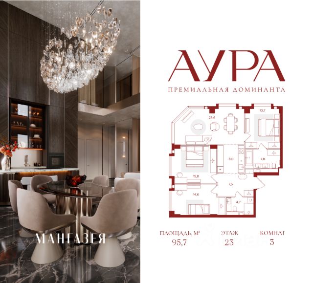 3-комнатная квартира площадью 87 м2. Высота потолков 3,16 м. Этаж 23 из 42. Вид из окон - на город. О проекте АУРА новая премиальная доминанта Москвы в 10 минутах от Садового кольца. Проект состоит из 42-этажной Бронзовой башни и 41-этажной Серебряной. Рядом набережная Москвы-реки, Даниловский рынок, музеи и галереи, престижные школы и вузы. Двор и благоустройство Приватная территория АУРЫ состоит из нескольких функциональных зон для тихого отдыха, работы и активного времяпровождения на свежем воздухе. На нижнем уровне расположены детские и спортивные площадки, скалодром и крытый павильон для подвижных игр. Выше — амфитеатр для отдыха и вечерних променадов, уличный коворкинг с мебелью и лаунж-зоны с лежаками у воды. На крыше — тихий уголок для занятий йогой, встречи рассветов и наслаждения закатами. По всему двору проложены пешеходные дорожки с подогревом в зимний сезон. Придомовую территорию АУРЫ украсит уникальный для Москвы объект — скала из натурального камня с водопадом, которая станет новой городской достопримечательностью. Эксклюзивная инфраструктура Только для резидентов: • Бьюти-комната • Коворкинг, переговорные и акустические кабинеты • Детская игровая комната • Спортзал и студия для тренировок • Просторные колясочные • Сервисная комната • Лапомойки для домашних питомцев Инфраструктура в составе проекта: • Ресторан авторской кухни • Современная медицинская клиника • Частный детский сад • Бизнес-центр класса "А" • Коммерческие помещения, закрывающие любые потребности — супермаркет, химчистка и др. Атрибуты комфорта • Индивидуальная вентиляция квартир • Вентиляция с очисткой воздуха в общих зонах • Мультизональное центральное кондиционирование (VRF) • Горячая вода круглый год • Вода качества, сопоставимого с питьевой • Усиленная звукоизоляция квартир Входные группы • Гранд-лобби в стиле современной роскоши • Дизайнерские лобби в каждой башне • Панорамное остекление Квартиры Более 40 планировок: от уютных студий до просторных семейных лотов. Всего 916 квартир площадью от 28,1 до 148,8 м². Высота потолков от 3,16 до 6,2 м. Уникальные планировки: • Квартиры с террасами • Квартиры с окном в ванной • Квартиры с круговым остеклением • Двухуровневые пентхаусы Паркинг и келлеры Двухуровневый подземный паркинг на 563 парковочных места: • Постоянные места: 496 (в том числе 48 мест для маломобильных) • Гостевые места: 67 • Персональные кладовые и велостанция • Мойка автомобилей • Станция для подкачки шин • Зарядки для электромобилей • Зона для разгрузки крупногабаритных предметов Интеллектуальные системы • Персональный бесконтактный доступ на территорию и в здание по электронному ключу (Bluetooth/RFID) • Премиальные лифты Mitsubishi • Автоматический въезд на паркинг для резидентов по распознаванию номеров • Круглосуточное видеонаблюдение с возможностью push-уведомлений • Система датчиков для круглосуточного мониторинга • Усиленный сигнал связи — стабильный прием сотовой связи и интернета на всей территории Сервис • Уп
