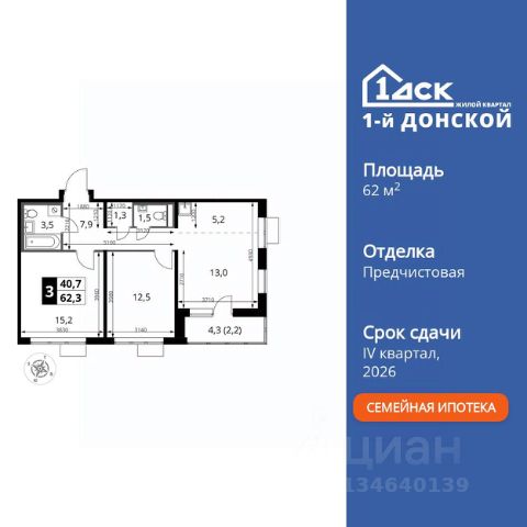 Прямая продажа от застройщика! Жилой Комплекс класса Комфорт Плюс. Продаётся 3-к квартира номер 481 общей площадью 84.3 кв.м. на 24-м этаже 24 этажного здания. Предчистовая отделка. Цена с учётом скидки. Особенности квартиры: - МЦД-5 в пешей доступности - Квартал с собственной набережной - Свои 2 детских сада и школа - Организуем показ в удобное для вас время! - Просторная спальня, в которой можно разместить большую кровать. - Гостевой санузел - комфорт и удобство для ваших гостей. - Увеличенная высота потолков - ощущение простора и легкости. - Просторная кухня - место для семейных ужинов и кулинарных экспериментов. - Просторная мягкая зона - комфорт и уют для отдыха всей семьи. - Гардеробная - удобство для хранения и организации вещей. - Ниша под шкаф - компактное и удобное место для вещей. - Лоджия - уютное место для отдыха и тишины. Квартира с предчистовой отделкой. Вам не придется заниматься черновыми и трудоёмкими работы, а чистовую отделку и дизайн - сделайте на свой вкус. Информация о комплексе: ЖК "1-й Донской" в 7 км от МКАД: гармония городского комфорта и природы. Квартиры на 2-3 стороны света, форма секций и разная этажность создают динамичную архитектуру. Тёплая палитра фасадов и подсветка подчеркивают образ. Рядом - Ермолинский парк, Видновский лесопарк и Жуковский парк. Природа воздействует на все уровни восприятия: от видов до звуков и ароматов. Идеальный баланс для жизни в гармонии с окружающей средой. Транспортная доступность: Комплекс удобно расположен в 7 км от МКАД по трассе М-4 Дон (через Видное). Расстояние до Каширского шоссе составляет 12 км. Добраться до метро и центра Москвы позволяет развитая сеть маршрутов общественного наземного транспорта. Действующая ж/д станция Калинина Павелецкого направления в 15-17 минутах ходьбы (МЦД-5 в 2025-2026 гг). Внутренняя инфраструктура: "1-й Донской": продуманная среда в развивающемся районе. На территории - муниципальные школа и 2 детских сада, поликлиника, торговый центр с площадью для мероприятий. Сеть пешеходных маршрутов ведёт к магазинам и кафе, отделённым от дорог зелёными фито-стенами. Сквозные подъезды с панорамным остеклением и входами с улицы и двора наполнены светом. Всё для комфортной жизни в шаговой доступности, от повседневных нужд до общественных пространств. Квартира с предчистовой отделкой - ваш дизайн без черновых работ