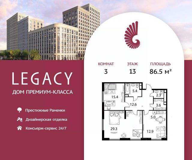 Светлая квартира общей площадью 83 м2 на 4-м этаже премиального жилого комплекса Legacy, расположенного в прекрасном зеленом районе Раменки. Отличная функциональная планировка: кухня-гостиная, 2 мастер-спальни со своими с/у и продуманной гардеробной зоной; гостевой санузел и просторный холл, который с первых шагов погружает в безупречное пространство изысканности и уюта. Жилое пространство спроектировано для исключительно комфортной жизни с возможностью реализации уникального дизайн-проекта. Для удобства будущих резидентов доступны два варианта отделки от застройщика: Premium и Elite премиальные материалы в отделке, мебель от европейских производителей, и освещение индивидуального изготовления. Жилой комплекс Legacy располагается на Мичуринском проспекте в районе с развитой инфраструктурой, богатой историей и высокой транспортной доступностью. Москва-река, Ботанический сад МГУ, главный корпус МГУ и Воробьевы горы на расстоянии прогулки от комплекса. Проект состоит из 9 секций переменной этажности от 8 до 17 этажей. В каждой секции не более 5 квартир на этаже, что обеспечивает высокий уровень приватности. Архитектура Проект Legacy разработан архитектурным бюро Speech. Его строгая лаконичность дополнена современными стандартами роскошной и комфортной жизни это бессменная классика, которая всегда вне моды. Благоустройство Свой приватный двор-сквер площадью 3 600 м2 с пространствами для всех возрастов: на территории располагаются игровые площадки, детский городок, песочница, воркаут-зоны, батуты, места для отдыха, лабиринты, настольный теннис и шахматные столы. Презентабельные лобби Дизайнерские лобби и холлы с премиальной отделкой. Изысканный стиль и высококачественные европейские материалы, отражающие высокий статус резидентов дома. Инфраструктура в доме Магазины, салон красоты, спортивная студия на первом этаже. А также ресторан Seasons, который позволяет разнообразить рацион и сделать каждый ужин особенным. Комфорт и безопасность Премиальный консьерж-сервис 24/7, круглосуточная охрана, видеонаблюдение, система СКУД, закрытый охраняемый паркинг и эксклюзивное мобильное приложение для решения бытовых вопросов резидентов.