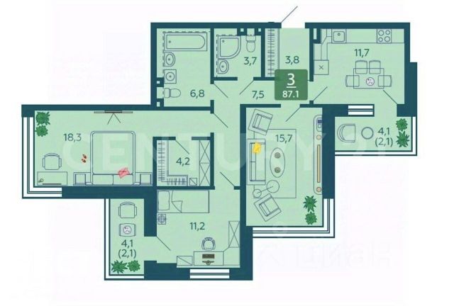 Продаётся 3-комнатная квартира в сданном доме (Корпус 1 (2 очередь 2 этап)), срок сдачи: I-кв. 2026, общей площадью 98.3 кв.м., на 2 этаже. Это город в городе, который не подстраивается под старые рамки, а задает новую планку и стандарт жилого района в России. Здесь создается самодостаточная и цельная среда, в которой есть место для реализации потребностей каждого жителя. Архитектура и общественные пространства района спроектированы на основе ежедневных сценариев жизни конкретных пользователей. Весь район спроектирован на основе принципа 15-минутной доступности необходимой инфраструктуры и продуманных прогулочных маршрутов. Разнообразие пешеходных маршрутов и короткие расстояния между основными точками притяжения дают возможность резидентам Shagal больше передвигаться пешком, не выпадая из ритма большого города. При этом разноформатная транспортная сеть района и безопасный скоростной режим создают комфортные условия для перемещений любым другим способом: на автобусе, на машине, на велосипеде.