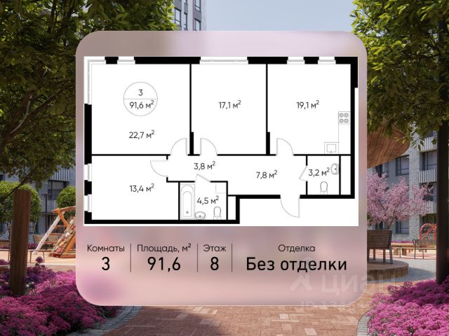 Продается трехкомнатная квартира в городе-парке "Переделкино Ближнее". Общая площадь квартиры - 81,2 кв. м, этаж 5 из 17. Срок сдачи - 3 квартал 2026 года. Тип дома - монолитный. ТОЛЬКО ДО 31 МАРТА выгодные условия на приобретение квартиры в ипотеку или рассрочку. Звоните - и мы подберем оптимальное предложение под ваш запрос! Город-парк "Переделкино Ближнее" расположен в 8 км от МКАД по Боровскому шоссе. ТРАНСПОРТНАЯ ДОСТУПНОСТЬ: - 10 минут пешком до МЦД-4 "Мичуринец" - 15 минут пешком до станции метро "Рассказовка" Солнцевской линии - 10 минут на машине до станции метро "Филатов Луг" Сокольнической линии - 30 минут до центра Москвы - Прямой выезд на дорогу Солнцево-Бутово-Варшавское шоссе, минуя жилую застройку всего ЖК БЛАГОУСТРОЙСТВО: 18 фаза строительства уникальна своим расположением - в шаговой доступности парк на Лукинской улицы, река Алёшинка. На территории 18 фазы строительства будут построены 2 монолитных жилых корпуса повышенного комфорта разной этажности 7, 17 этажей. А также многоуровневый паркинг на 300 м/мест. Вход в жилую часть корпусов каждой секции осуществляется с двух сторон - с наружного контура жилого дома и со стороны дворового пространства, предусмотрен безбарьерный доступ. ВНУТРЕННЯЯ ИНФРАСТРУКТУРА: В рамках данной фазы, для жителей предусмотрено создание пространства, свободного от машин - благоустроенные огороженные дворы с современными детскими и спортивными площадками, разделенными на зоны по возрастам. На территории проекта есть все необходимые объекты социальной и бытовой инфраструктуры: детские сады, школы, магазины, паркинги, аптеки, поликлиники, пожарная часть и др. АВТОРСКИЙ ДИЗАЙН: Современный монолитный дом переменной этажности 7 и 17 этажей. На фасаде предусмотрены корзины для установки кондиционеров. Входные группы домов выполнены по авторскому дизайну. Колясочные располагаются при входе, велопарковка на -1 этаже.