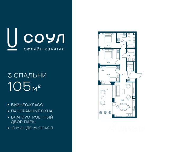 Прямая продажа от застройщика. Продаётся 3-комнатная квартира общей площадью 90.39 м² без отделки в ЖК "Селигер Сити" на 9-м этаже 21 этажного дома. Селигер Сити - это уютное пространство, где предусмотрена застройка разной этажности, чтобы каждый покупатель мог выбрать то, что ему по душе: невысокие дома или небоскребы, с верхних этажей которых будут открываться отличные виды на город. Преимущества проекта: Первые три очереди сданы. - 2 минуты пешком от метро "Селигерская" - Архитектурное решение от голландского бюро MLA + - 8 корпусов разной этажности от 8 до 45 этажей - Одна из самых больших придомовых территорий в Москве - размером с 4 футбольных поля - Огороженная охраняемая территория, круглосуточное видеонаблюдение - Европейский подход к благоустройству от бюро WOWHaus: детские площадки для разных возрастов, спортивные площадки, площадки воркаута, дорожки для бега и пеших прогулок, скейтпарк, хоккейная площадка, площадка для выгула собак - Искусственный пруд на территории комплекса с благоустроенной набережной и мостом - Продуманная концепция инфраструктуры: уютные кафе и рестораны, супермаркет, магазин фермерских продуктов, бытовые службы, салон красоты, детские сады - Панорамные окна высотой до 2,5 м, в корпусах 3 очереди витражное остекление высотой до 4,2 м - Широкий выбор квартир - от компактных студий до просторных квартир с тремя спальнями и пентхаусов - Четыре вида дизайнерской отделки квартир от бюро Вlank Architects - Возможность купить квартиру с предчистовой отделкой white box - "Умный дом" на платформе Ujin. Система безопасности, вход на территорию и в подъезд по биометрии или BLE-метке, въезд в паркинг по считывателю номера, контроль климата. Все для комфортной жизни! - Лобби по индивидуальному дизайн проекту от европейского бюро Вlank Architects: лаунж-зоны, ресепшен, колясочная, помещение для мытья лап животным после прогулки - Подземный паркинг на 2189 машино-мест по индивидуальному дизайну, с зарядными устройствами для электромобилей, постами для подкачки шин и келлерами - Надежный девелопер с опытом премиальных проектов MR Расположение комплекса: - 2 минуты от станции метро "Селигерская" - 7 минут на машине до станции метро "Окружная" - Предусмотрен удобный выезд в сторону ТТК (всего 9 км или 15 минут без пробок) - МКАД в 10 минутах на машине Компания MR предлагает своим клиентам специальные условия приобретения квартир в рамках программ ипотечного кредитования от банков-партнеров.