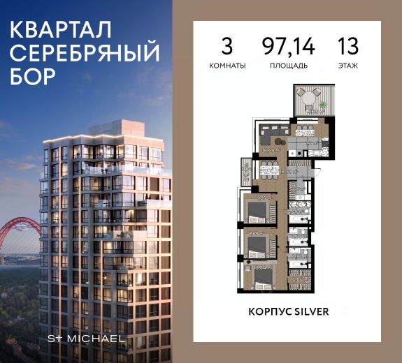 Клубный "Квартал Серебряный Бор". Премиум-класс. Коллекция статусных домов в окружении заповедного парка 340 га и набережной. Расположение: Жилой комплекс возводится в престижном районе Хорошёво-Мневники. Главное преимущество — близость к природному заповеднику "Серебряный Бор". Всего в 10 минутах от квартала Вас ждут 340 гектаров реликтового соснового леса, чистые пляжи с белым песком и набережная Москвы-реки. Инфраструктура парка включает знаменитый ресторан "Поместье" с бассейном и лаунж-зоной, а также современный яхт-порт, предлагающий аренду яхт, катеров, хаус-ботов и места для частных судов длиной до 15 метров. 10 минут на авто до Москва-Сити. В 5 минутах от квартала располагается проспект Маршала Жукова. Благодаря его многоуровневой развязке и движению в каждом направлении по пяти полосам жители смогут за короткое время доехать как до центра города так и до Новой Риги и Рублевского шоссе. 30 минут до Шереметьево 4 станции метро рядом: Серебряный бор Бульвар Генерала Карбышева Октябрьское поле Народное ополчение Инфраструктура: Панорамный бассейн-инфинити и джакузи под открытым небом. Сервис уровня 5 звезд. Персональные официанты из ресторана комплекса обеспечат подачу блюд и напитков прямо к вашему шезлонгу или в лаунж-зону. Двухуровневый ресторан с выходом к бассейну. 4 кафе с различными кухнями мира. Студия йоги, студия пилатеса, коворкинг, гастрономическая лавка, винотека, бутик-кондитерская, барбершоп, салон красоты, аптека, студия груминга, химчистка, цветочный бутик. Фитнес-студия для персональных тренировок с массажем и СПА. Благоустройство: Проект благоустройства создали специалисты международного архитектурного бюро "Гафа". Территория двора закрытая, предусмотрено ограждение внутренней территории высотой 3 метра. Со стороны ул. Берзарина двор закрыт стилобатом. На территории предусмотрены: Дроп-офф зона с фонтанами Променад с фонтанами и всесезонным озеленением Терраса для йоги и медитаций Воркаут-зоны, площадки с теннисным столом и зонами кроссфита Плейхаб для детей разных возрастов Летний кинотеатр Гранд-лобби Просторное гранд-лобби с высотой потолка 7м. Дизайн Гранд Лобби выполнен в стиле классических люксовых отелей с использованием премиальных материалов. Пол и стены: итальянский крупноформатный керамогранит под мрамор. Эксклюзивные люстры ручной работы. Дизайнерская итальянская мебель, античные скульптуры и предметы искусства. Каминная зона и лаундж для неформальных встреч. Высокоскоростные лифты КОЙО (скорость 2,5 м/с)