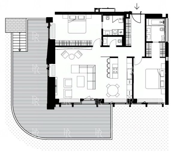 Планировка включает кухню-гостиную с выходом на террасу, 3 спальни с отдельными санузлами, гардеробную, холл, гостевой санузел и зону постирочной. Благодаря панорамному остеклению пространство наполнено естественным светом и теплом.
