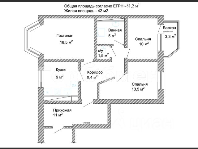 Можно делить пространство на зоны, а можно отделить еще одну 3-ью комнату с 2 окнами (детская, кабинет, еще одна спальня). Получится 3 комнатная квартира.