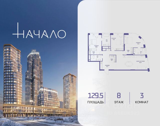 В престижном районе Пресня, на перекрестке делового и исторического центров Москвы, продается трехкомнатная квартира площадью 152.20 кв. м без отделки. Квартира находится на 12 этаже 24-этажного дома, в новом элитном жилом комплексе "Начало" от девелопера "Донстрой". Реализация проекта запланирована на 1 квартал 2030 года. Начало - футуристический дом на Пресне в нескольких минутах от Сити и Садового кольца. Проект по-настоящему космического масштаба, где есть все, чтобы раскрыть себя и свои возможности. Расположение Пресня - один из самых престижных районов Москвы. Жить здесь - значит стать частью истории столицы, быть в эпицентре деловой активности города и ощущать, как сама Вселенная вращается вокруг вас. - 5 минут пешком до Красногвардейских прудов; - 15 минут пешком до ст. метро "Улица 1905 года"; - 6 минут на автомобиле до Садового кольца и небоскрёбов "Москва-Сити"; - 12 минут на автомобиле до Кремля. Архитектура как путешествие Как росток пробивает скалу, как растет кристалл, как ракета устремляется ввысь - так формируется архитектурный образ этого дома. Точно выверенный баланс между футуристичными формами и функциональным содержанием дома выводит жизнь в нем на новую орбиту. Стеклянные фасады отражают небо и город, превращая здание в зеркало для окружающего ландшафта. Двор между небом и землёй Просторная территория двора с тремя тематическими зонами отдыха: "Млечный путь" - для детских игр и развлечений; "Космический сад" - для тихого отдыха и релакса; "Метеоритный сад" - для любителей спорта. Открытый променад - сквозной маршрут на крыше стилобата с зонами отдыха, занятий спортом, детских игр и совместной работы. Все площадки плавно связаны между собой прогулочной дорожкой. Теплая кольцевая галерея и мосты над пространством двора - все корпуса "стыкуются", точно модули космической станции. Главный центр притяжения В составе проекта возводится собственный комьюнити-центр, где создана идеальная атмосфера для любых начинаний: - Детский клуб для будущих покорителей Вселенной; - Коворкинги для решения задач планетарного и космического масштабов; - Переговорные для судьбоносных и просто важных встреч; - Лаунжи с атмосферой дзена и релакса; - Библиотека для спокойного чтения; - Кинотеатр для классики и блокбастеров. Территория комфорта и приватности Всё нужное рядом: - Современный образовательный центр со школой и детским садом - для ваших детей; - Фитнес-центр с бассейном - для релакса и борьбы со стрессом; - Ресторанная улица: кафе, рестораны, летние террасы - для деловых обедов и семейных ужинов; - Пекарня и минимаркет в доме - для ежедневных покупок; - Сквер у дома - для неспешных прогулок и спокойного отдыха; - Никаких такси на улице. Машина заберет вас прямо в подземном паркинге вашего корпуса.
