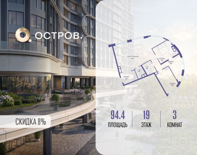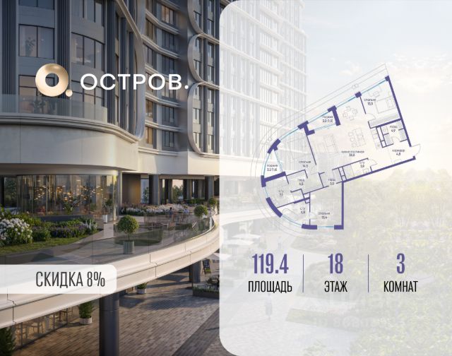 Скидка до 8% действует до 31.03.2026 г. при 100% оплате и не субсидированной ипотеке. Продаётся трехкомнатная квартира от застройщика: общая площадь 127.90 м², жилая 36.30 м², кухня 35.80 м², 15, жилой квартал "Остров 7", корпус 2 (7 квартал) (секция 2). срок сдачи: 4-кв. 2025. , 3 санузла: 3 совмещенных. В жилой зоне 2 больших окна на одну сторону, хорошая инсоляция. Позвоните сейчас и забронируйте квартиру! Купите квартиру в доме у прибрежного парка, в квартале ОСТРОВ.7. Это семь корпусов премиум- и бизнес-класса в одном из лучших мест ОСТРОВА - между бульваром и парком, поблизости от реки. Стильные корпуса имеют узнаваемый вид благодаря бионической пластике фасадов, приподнятых над землей. Для жителей предусмотрены детский клуб, фитнес-рум, коворкинг, переговорные, лаунжи. На крышах устроены видовые общественные пространства с зонами для отдыха и спорта. Двор расположен на двух уровнях: нижний ландшафтный парк и верхняя городская терраса. ОСТРОВ.7 - часть жилого комплекса на западе Москвы, в 15 минутах езды от центра. Это настоящий заповедник посреди большого города, в окружении реки и 650 га заповедников. Здесь все необходимое находится по соседству: от детского сада до супермаркета, от фитнес-зала до серфинг-центра. На территории созданы все условия для отдыха и общения: клубная инфраструктура в домах и дворы-парки, набережные и променады, маршруты для спортсменов, детей и возрастных жителей. В нескольких минутах ходьбы расположена станция метро "Терехово" БКЛ. На автомобиле - 10 минут до Москва-Сити и 15 минут до Садового кольца.