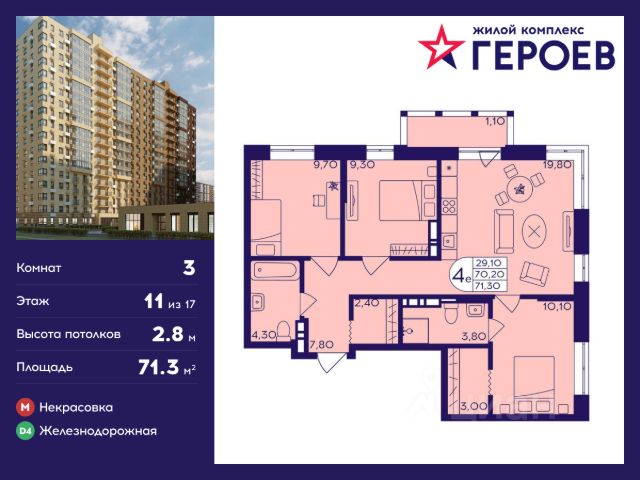 ЛУЧШАЯ НОВАЯ БОЛЬШАЯ (74,4 кв.м) 3-Х КОМНАТНАЯ квартира в микрорайоне ЯНТАРНЫЙ! Тихий оазис спокойствия недалеко от МКАД (всего 2 км по Щелковскому шоссе). Рядом национальный парк Лосиный остров.