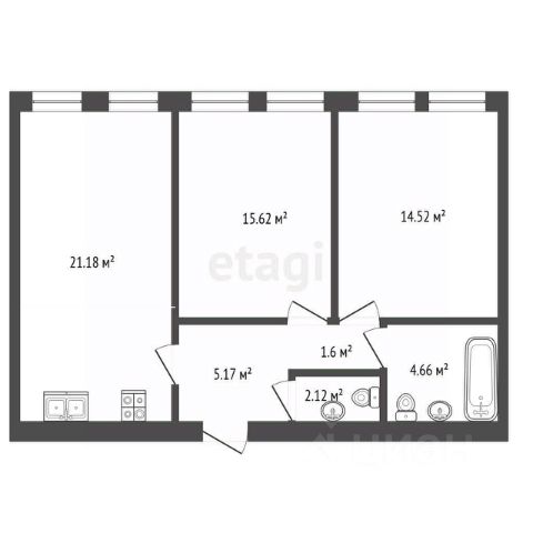 - удобная планировка: две изолированные спальни и уютная гостиная объединена с кухней