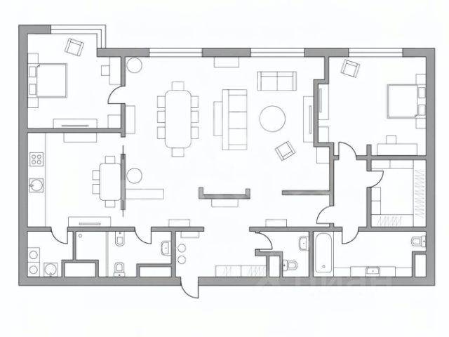 Эксклюзивная трехкомнатная квартира в клубном доме "Филипповский". Тихий переулок старого Арбата, исторический центр. Планировка продуманная функциональностью, идеальные условия для жизни и работы. Пространство включает просторную гостиную с обеденной зоной площадью 53 м², изолированную мастер-спальню с гардеробной и собственной ванной, а также вторую комнату, которую можно использовать как кабинет или гостевую спальню. Дополнительные преимущества: два санузла, постирочный блок и холл. Авторский ремонт выполнен бюро "Самыгин и Самыгин" в стиле современного ар-деко. В отделке использованы натуральные материалы: мрамор, оникс, ценные породы дерева и тканевые обои. Кухня итальянского бренда Brummel оснащена техникой Liebherr и Kuppersbusch и дополнена уникальным слэбом из оникса с подсветкой. Мебель Barbara Barry, сантехника Villeroy & Boch и техника Miele. Интерьерные детали: слэб "Ван Гог" в гостевом санузле и мрамор Чиполло в основной ванной. Подземный паркинг с автомойкой, круглосуточной охраной и консьерж-сервисом. Пешая доступность к театрам, музеям, ресторанам и паркам. Документы готовы к сделке. 541700 Элитное жилье - 3-комнатная квартира в переулке Филипповский в Москве.