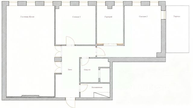 Состоят из двух изолированных комнат, гостиной, кухонной зоны и двух совмещенных санузлов