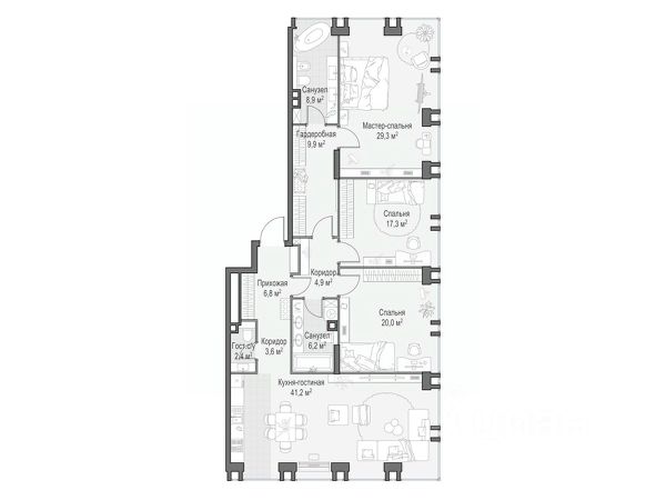 Просторная светлая квартира площадью 120 кв. м с окнами, выходящими на тихую улицу Сергея Макеева и современный бизнес-центр Marr Plaza. Большое панорамное окно в с/у с возможностью открывания настежь улучшает видовые характеристики. Продуманная планировка позволяет разместить две мастер-спальни с отдельными санузлами и гардеробными и одной просторной спальней. Life Time - роскошный современный квартал на Пресне, в наиболее быстро растущем премиальном районе ЦАО. Его насыщенная инфраструктура и выгодное расположение дарят время для жизни. Вы больше не тратите его на дорогу или ожидание, при этом ни в чём себе не отказывая. На территории предусмотрено всё для комфортной жизни: • двор-парк площадью 1,8 гектара с прудом и фонтанами; • Clubhouse - инфраструктурный центр в отдельном здании с исчерпывающими возможностями для спорта, отдыха и досуга только для жителей; • спортивная инфраструктура на улице и в помещении, в том числе бассейн длиной 25 метров, хот-таб, хаммам, сауна, бьюти-зона; • клубная гостиная с террасой; • всё для развития и досуга детей любого возраста, в том числе детский сад и школа. Life Time находится в центре сложившегося премиального района, в окружении многочисленных парков. Удобная транспортная доступность и прямой выезд на Звенигородское шоссе позволяют без проблем добраться до Садового кольца и Москва-Сити. Архитектурный стиль квартала - роскошный минимализм. Дома десятилетиями будут выглядеть современно.