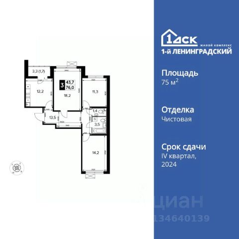 Прямая продажа от застройщика! Жилой Комплекс класса Комфорт Плюс. Продаётся 3-к квартира номер 172 общей площадью 76.2 кв.м. на 10-м этаже 13 этажного здания. Чистовая отделка. Цена с учётом скидки. Особенности квартиры: - Просторная спальня, в которой можно разместить большую кровать. - Распашная планировка - отличное сочетание удобства и свободы. - Гостевой санузел - комфорт и удобство для ваших гостей. - Ниша под шкаф - компактное и удобное место для вещей. - Лоджия - уютное место для отдыха и тишины. - Панорамное остекление лоджии - открывает вид на окружающий мир. Информация о комплексе: В концепции благоустройства гармонично сочетаются черты двух городов. Территорию комплекса пронизали стрелы прогулочных бульваров, уменьшенные копии петербургских проспектов. Стремимся, чтобы каждый элемент ЖК был продуман, наполнен комфортом и заботой для всех жителей, включая четырехлапых. В каждой квартире подключен базовый пакет Умная квартира забудьте о беспокойстве о протечке; настройте свои сценарии управления техникой и электричеством; общайтесь с Умной квартирой голосом; Можете легко расширить базовый пакет и подключить дополнительные опции и устройства, чтобы из любой точки мира управляй работой бытовых приборов и систем, например: включайте разогрев ужина; регулируйте яркость яркость света; регулируйте громкость музыки; настраивайте работу теплых полов. Транспортная доступность: 15 минут пешком до станции Молжаниново (Планерная), МЦД3. Всего в 7 км от МКАД по Ленинградскому шоссе, сразу после пересечения с Международным шоссе. Внутренняя инфраструктура: Для детских игр и отдыха взрослых в квартале предусмотрено множество вариантов уютных московских двориков. Детские зоны отделены от взрослых, спортивные площадки и зоны воркаута с их шумными играми вынесены за пределы дворов. В обустройстве всех зон использованы только экологичные материалы. Оборудование для игровых площадок разрабатывалось с привлечением детских психологов. Для любителей велосипедов проложены велодорожки, ведущие к живописным прудам. Если же вам нужно в магазин, аптеку, а может, просто захотелось посидеть с семьей или друзьями в кафе по соседству - все необходимое расположено на первых этажах зданий с внешней стороны комплекса.