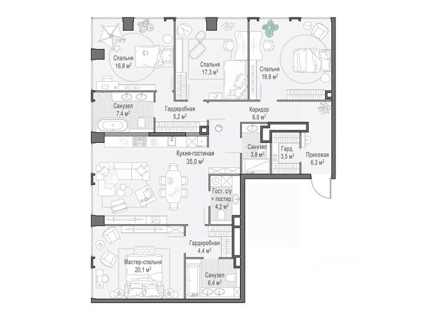 Старт продаж! Квартиры в Москва-Сити в самой инновационной башне Оне. В продаже 3-комнатная квартира площадью 107.70 м² на 60-м этаже. Новый современный жилой комплекс премиум-класса Оне расположен в самом сердце деловой жизни столицы — в Москва-Сити, где захватывающая дух архитектура встречается с безупречным уровнем комфорта. Оне находится в Пресненском районе, в пешей доступности от станции метро "Деловой центр". Проект был разработан выдающимся архитектором Сергеем Кузнецовым при участии международного бюро Gensler. Уникальная скульптурная форма башни, вдохновленная лентой Мебиуса, создает новый узнаваемый силуэт делового центра и задает непревзойденный стандарт вертикальной жизни. По замыслу архитекторов, жилой комплекс представляет собой две вертикальные башни, соединенные в нижней и верхней точках. На 85 этаже расположен Sky Garden — самый высокий в Европе парк с оазисом природы и секретным садом в облаках, а на 83 этаже парит стеклянный мост Sky Bridge с панорамными видами. Важнейшей особенностью комплекса является его всесторонняя инфраструктура по принципу All-in-Оне: закрытый клуб с лаунжами, приватным кинотеатром, бильярдной, рабочими зонами и фитнесом. Здесь же расположена торговая галерея бутиков и премиальный гастро-кластер, концепцию которого разработал известный ресторатор Александр Сысоев. Особенности комплекса: - Эксклюзивная архитектура от главного архитектора Москвы - Самый высокий в Европе небесный сад Sky Garden на 85 этаже - Панорамное остекление от пола до потолка во всех квартирах - Smart-инженерия и сервис уровня пятизвездочного отеля - Приватная клубная инфраструктура All-in-Оне - Трехуровневый паркинг с зарядными станциями для электрокаров - Круглосуточная безопасность и консьерж-сервис Расположение комплекса: - Пешая доступность от станции метро "Деловой центр" - 2 минуты до Экспоцентра - 5 минут до Дома Правительства - 7 минут до Кутузовского проспекта